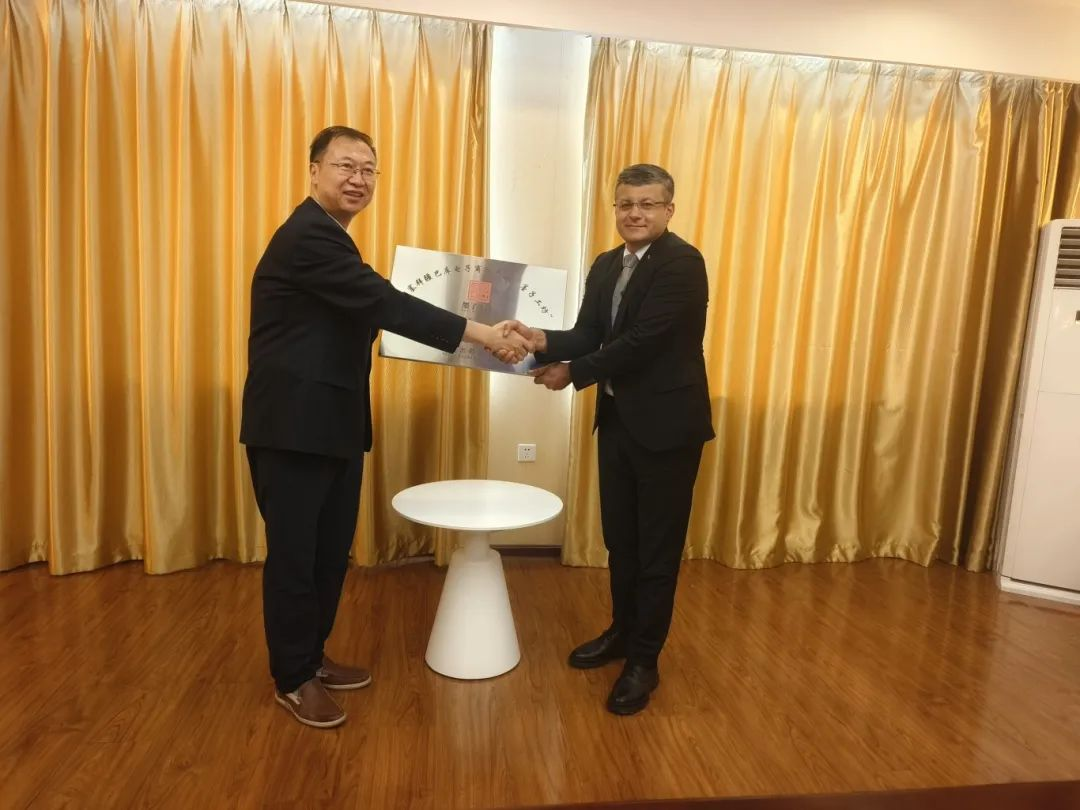 会上,王斌书记与卡比尔副校长共同为“阿塞拜疆巴库电子商务产业墨子工坊”揭牌。